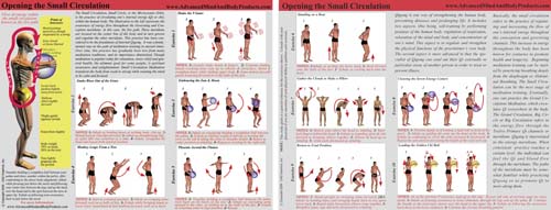 The Small Circulation, Small Circle, or the Microcosmic Orbit, is the practice of circulating one’s internal energy (Qi or chi), within the human body. The illustration below represents the awareness of energy flow throughout the Governing and Conception meridians; in this case, the fire path. These meridians are located on the center line of the body and in turn govern and regulate the other meridians. This practice has been considered to be the foundation of Internal Qigong. It was a fundamental step on the path of meditation training in ancient times. Over time, this practice has gradually been lost from many meditation traditions, and its importance diminished. Though meditation is popular today for relaxation, stress relief and general health, the ultimate goal for some people, is spiritual awareness and enlightenment. Small Circulation Meditation transform the body from weak to strong while training the mind to be calm and focused.