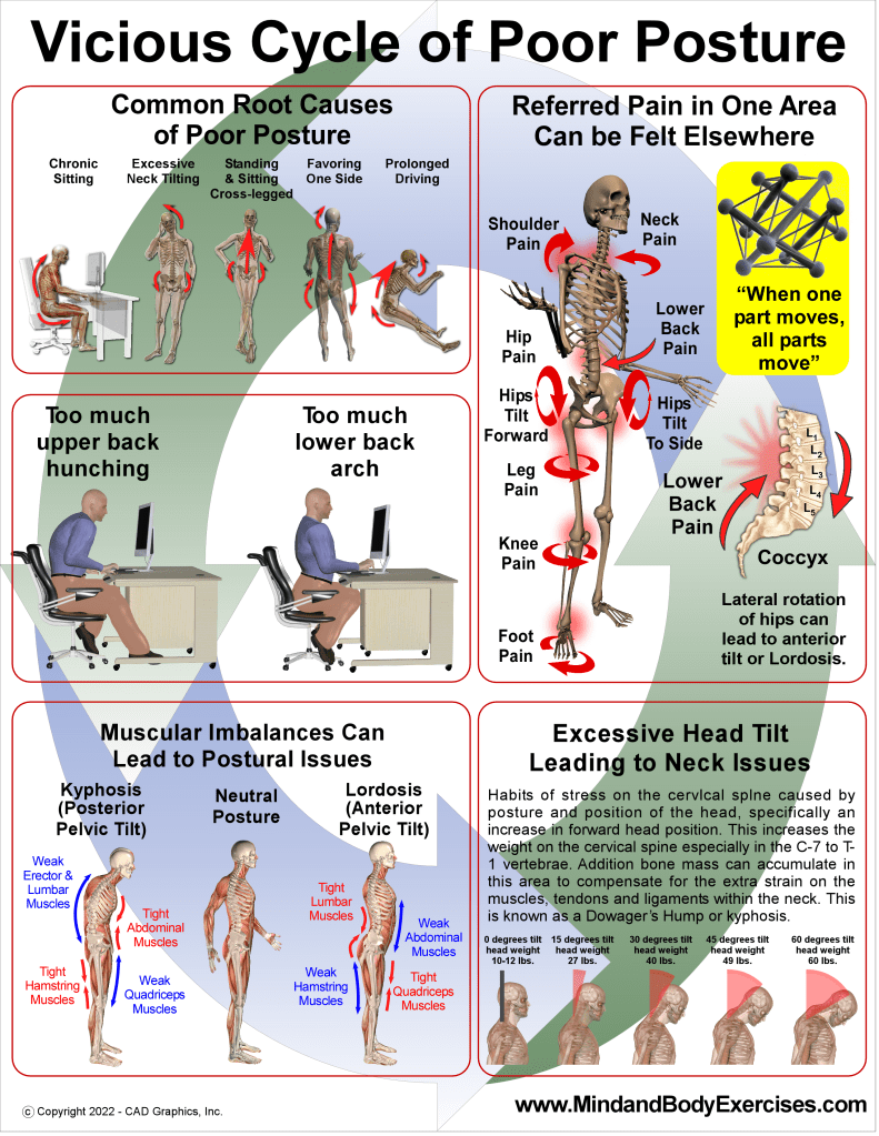 Poor posture and relative lifestyle habits are a topic I write about often, as these are such integral components in avoiding chronic pain. Chronic ailments can often escalate to other mental and physical health issues. Coping with chronic pain eventually takes its toll on the individual and those around them.