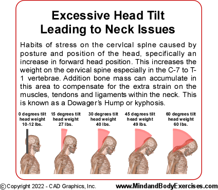 Habits of stress on the cervical spine caused by posture and position of the head, specifically an increase in forward head position. This increases the weight on the cervical spine especially in the C-7 to T-1 vertebrae. Addition bone mass is accumulated in this area to compensate for the extra strain on the muscles, tendons and ligaments within the neck.