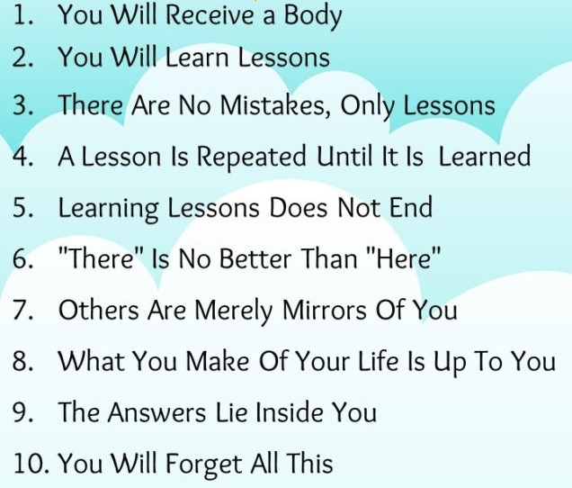 2. You will learn lessons. You are enrolled in a full-time informal school called “Life on Planet Earth”. Every person or incident is the Universal Teacher.