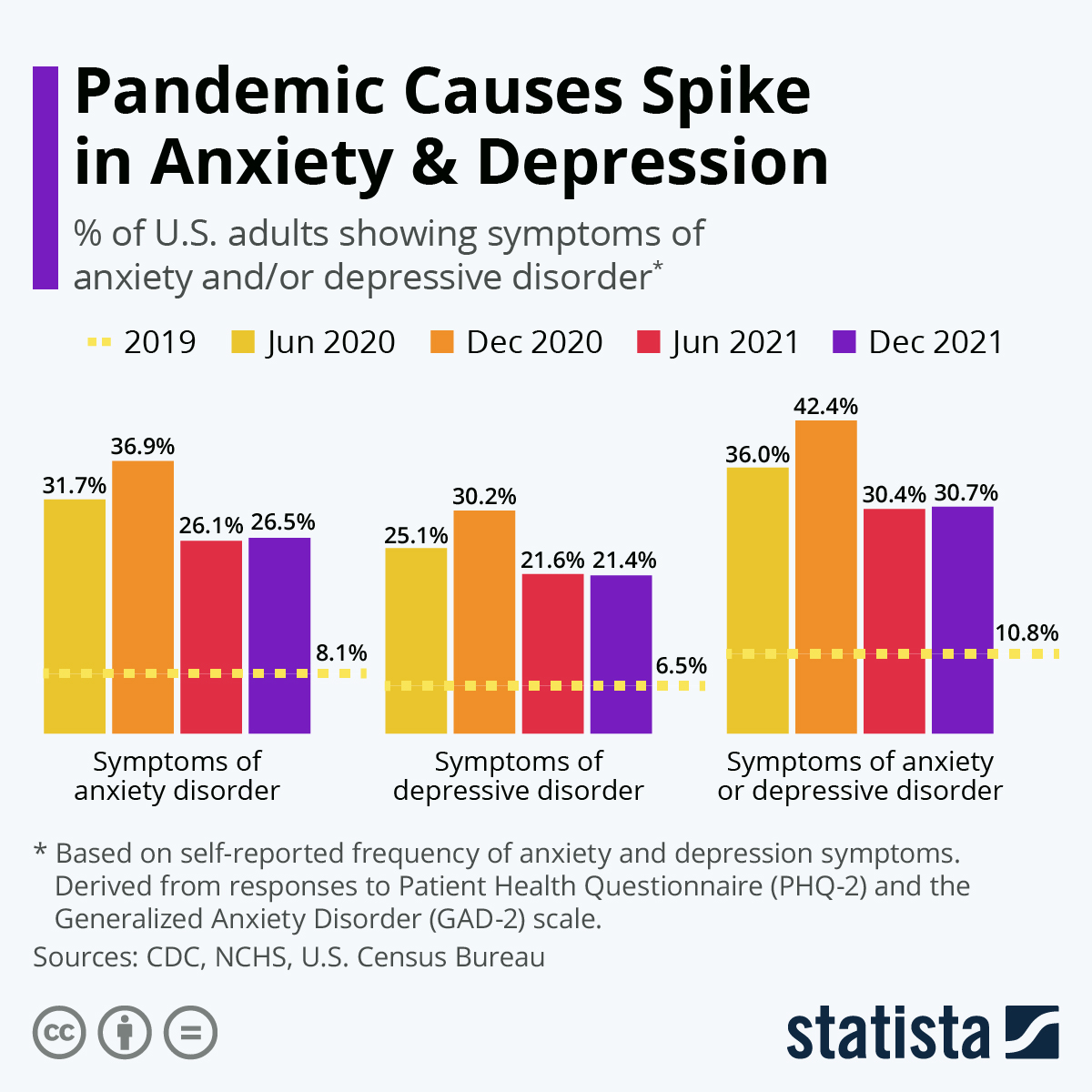 – Depression (10%) and anxiety (63%) at all time highs (especially for teenage girls 60%)