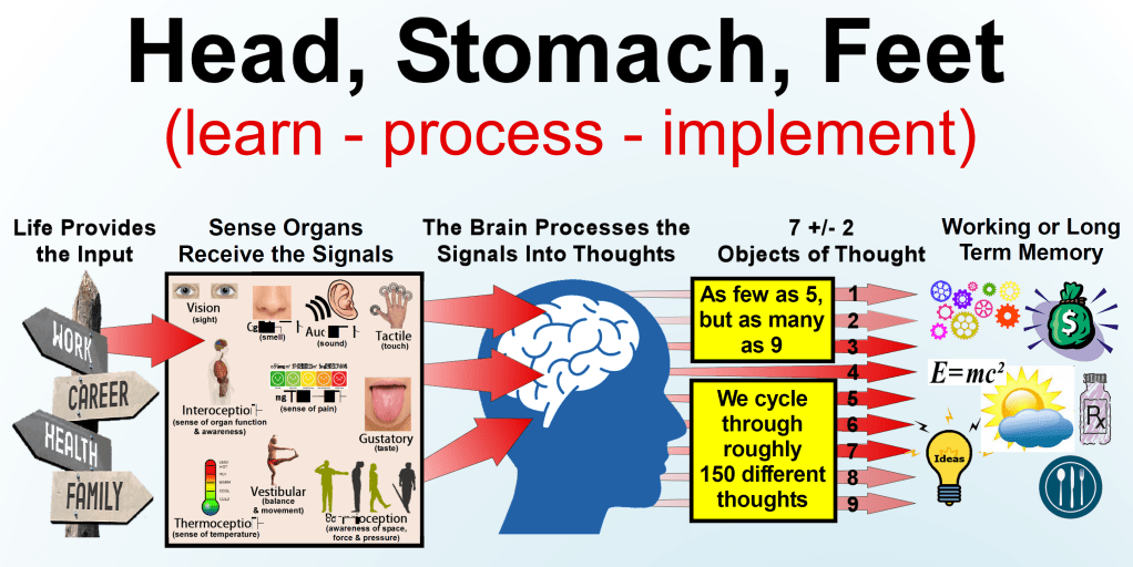 Once the brain observes stimulus, and then processes this input, other thought processes determine the “how and why’s” of putting this input either into short-term memory (STM) for immediate usage or stored into long-term memory (LTM) for later access.