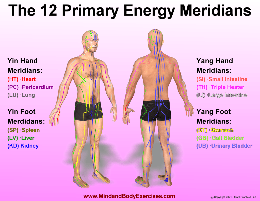 Chi or Qi (pronounced as “chee”) translates to mean “breath” in Chinese. Chi is the life energy that all living creatures require in order to exist. Different cultures call this energy, Ki (from Japanese), Gi (Korean) or Prana (Indian). Chi is a type of energy in the human body and circulates within the blood throughout. Chi flows in a specific pattern from the chest, down the front of the arms to the fingers. It then travels up the back of the arms to the head. The chi then travels down the back to the feet and back up the front of the body to the chest. It travels through meridians within the body that can be best described as something similar to the electrical lines on a printed circuit board. There are 12 main meridians and 8 extraordinary ones as well. There are points along these meridians that are known as “pressure points” or acupoints for acupressure and acupuncture.
