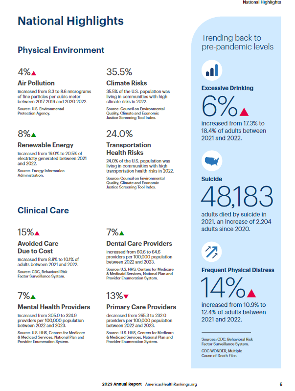 2023 Annual report. (2023). In American Public Health Association, America’s Health Rankings. https://assets.americashealthrankings.org/app/uploads/ahr_2023annual_comprehensivereport_final2-web.pdf