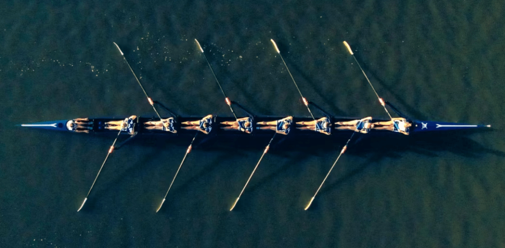 I have seen others achieve the flow state through rowing or crew. In rowing this flow state is referred to as “perfect swing” or just swing. Swing only happens when all eight rowers are rowing in such perfect unison that no single action by anyone is out of sync with those of all the others. Only then will the boat continue to move, unchecked, fluidly and gracefully between the pulls of the oars.