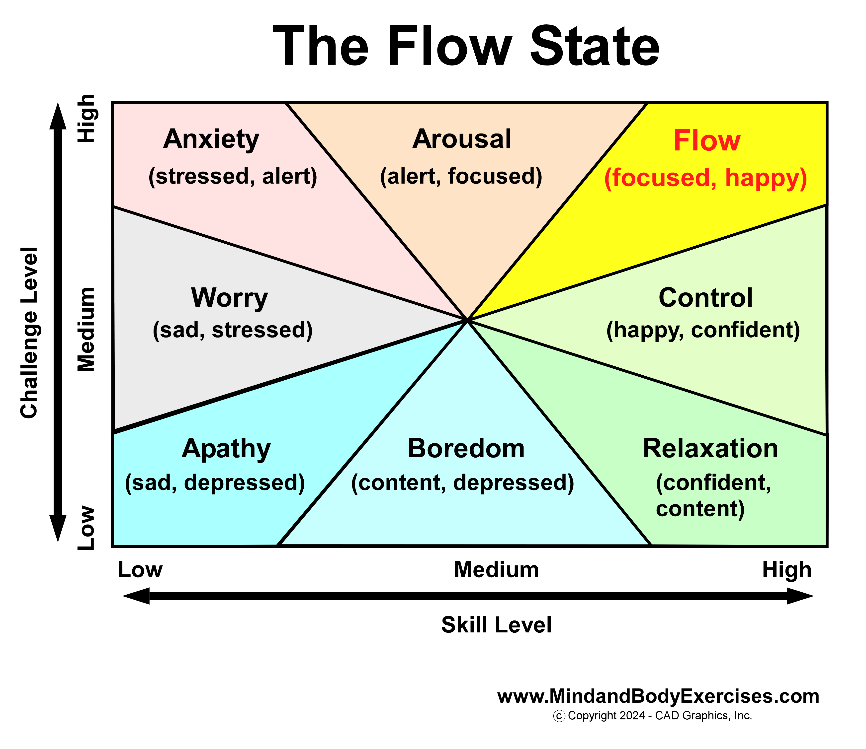 The “flow state” also known as being “in the zone,” refers to a focused mental state in which an individual is fully immersed in an activity, perhaps feeling energized, with effortless action, while also enjoying the process. This term was introduced by psychologist Mihaly Csikszentmihalyi in the 1970s. This flow is often described as a state of “optimal experience,” where individuals are so involved in what they are doing that they may lose track of time and may even become oblivious about their surroundings.