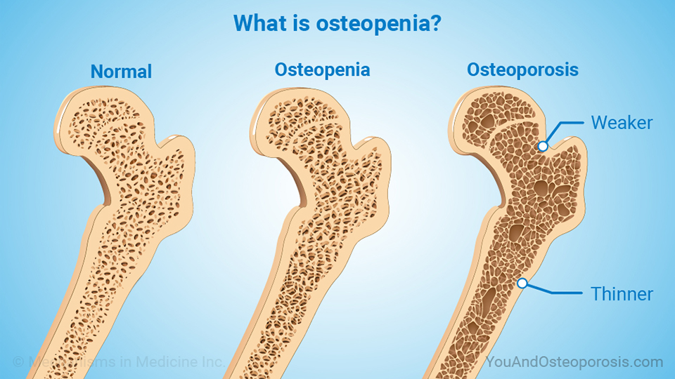 - Osteopenia: This is the early stage of bone loss, where bone mineral density (BMD) is lower than normal but not low enough to be classified as osteoporosis. It is often a precursor to osteoporosis and indicates weakening bones.