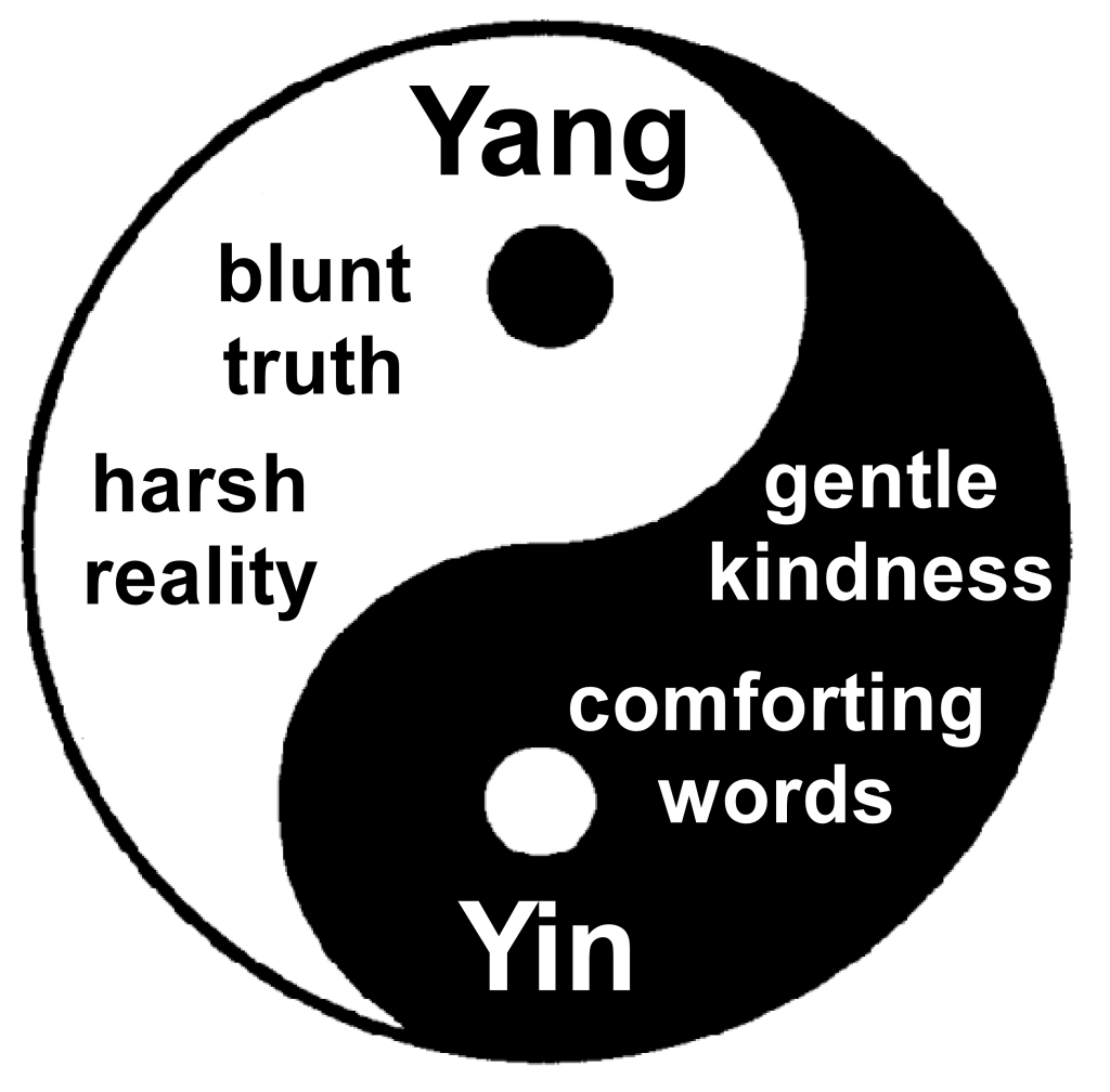 - Kindness (Yin – Soft, Subjective, Nurturing): Kindness is based on empathy and the emotional aspect of interactions. It often aims to soften the impact of truth to maintain harmony and relationships. This relates to the emotional side of “truthfulness,” focusing on how something feels rather than its factual accuracy. Similar to yin, kindness nurtures and soothes, sometimes prioritizing comfort over complete disclosure.
