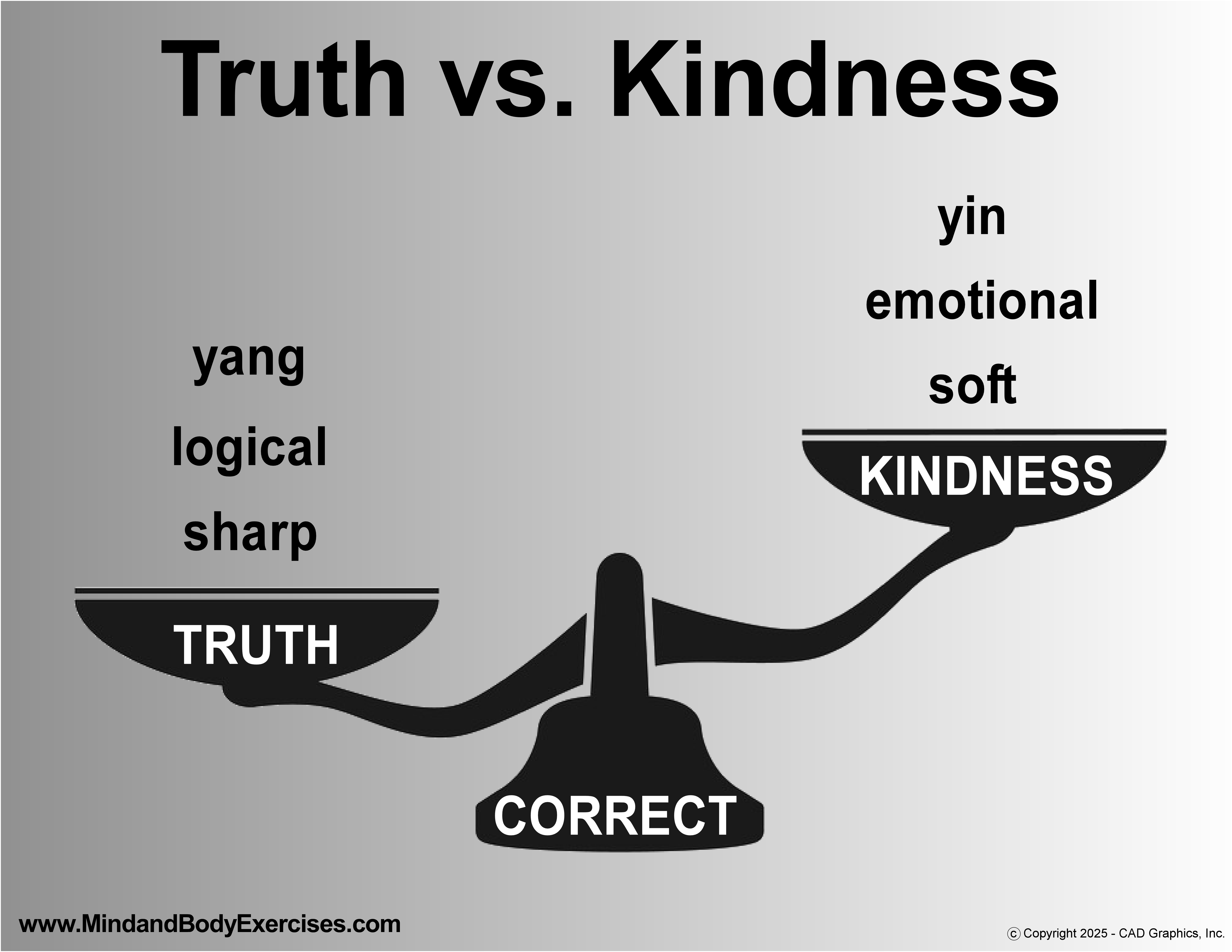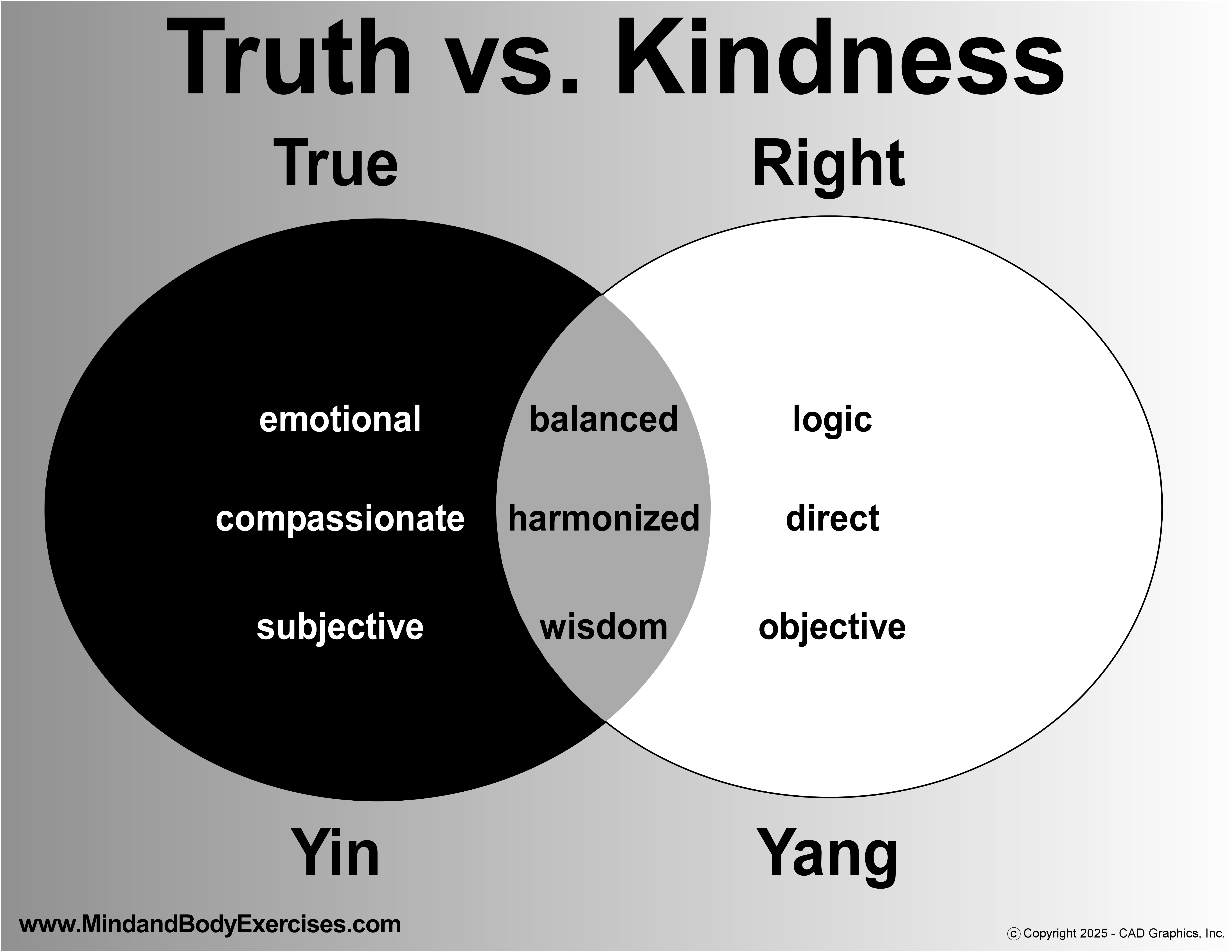 The statement, “True words are seldom kind. Kind words are seldom true,” reflects the dynamic interplay of yin and yang, as well as the balance between truth (emotion) and rightness (logic), with correctness emerging as their synthesis.