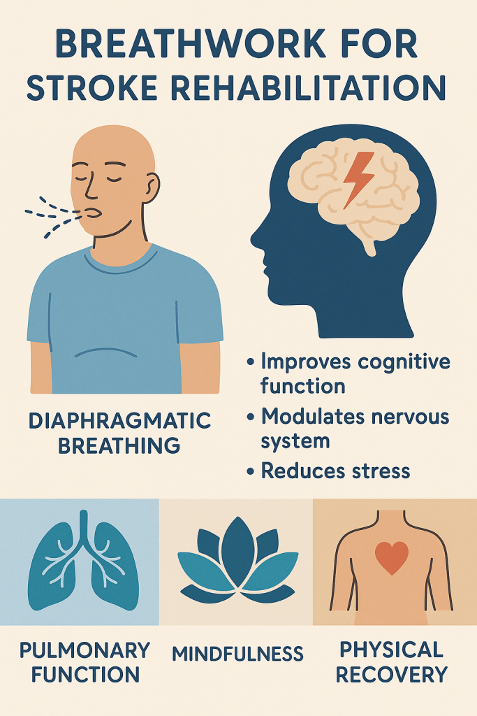 Another meta-analysis found that respiratory muscle training significantly improved walking ability, respiratory strength, and vital capacity in stroke survivors (Liu et al., 2024). Breath regulation also fosters mindfulness and can reduce stress-induced cortisol levels, which otherwise impair cognitive and physical recovery.