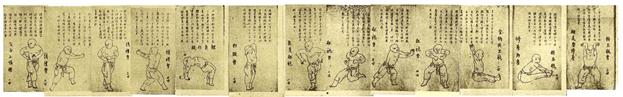 The YiJin Jing consists of dynamic tension exercises that train the musculature, tendons, and fascia, preparing the body not only for martial use but also for maintaining vitality and structural integrity. These exercises, according to tradition, were prescribed by Bodhidharma to enhance the monks’ endurance and resistance to fatigue and essential for rigorous spiritual practices (Henning, 1999). Movements from YiJin Jing later evolved into practical combat sequences, emphasizing controlled breathing, rooted stances, and explosive force, characteristics now central to Shaolin martial arts.