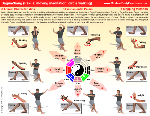 - The “Eight Mother Palms” form the basis of Bagua internal development, practiced typically during circle walking. Each palm emphasizes body alignment, spiraling technique, and transitional mechanics (Chu, 2019).