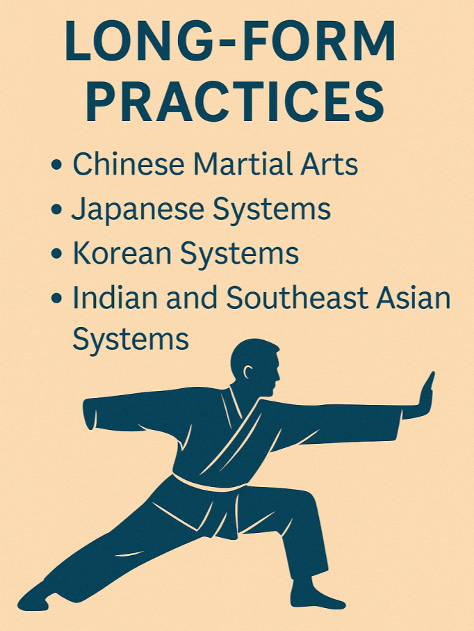 Numerous systems around the world preserve extended forms or sequences. These practices vary in complexity, purpose, and duration, but share the intention of transmitting depth of method and cultivating physical and internal mastery.