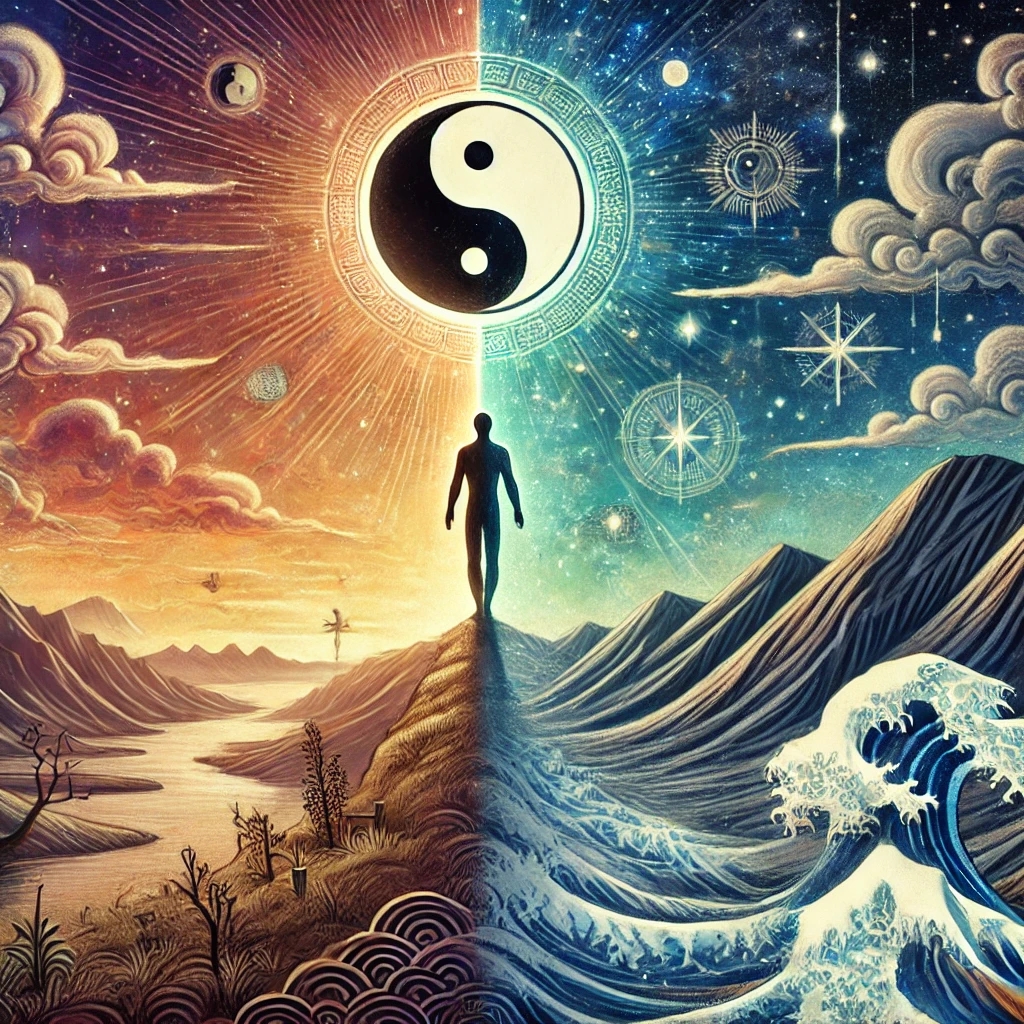 The concept of “Man divides Heaven and Earth” is a fundamental idea in Chinese philosophy, particularly in Daoism and Confucian thought. It relates to the idea that humanity serves as a bridge between Heaven (天, Tiān) and Earth (地, Dì)—two fundamental cosmic forces.