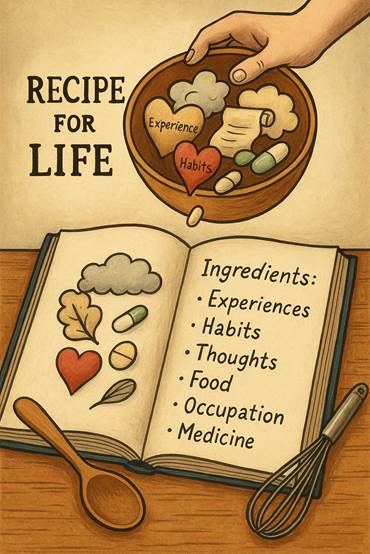 Every life begins with a set of core ingredients: genetic inheritance, environment, education, relationships, nutrition, movement, and purpose. These are our “flour, sugar, and eggs.” Each represents a dimension of well-being that requires mindful measurement.