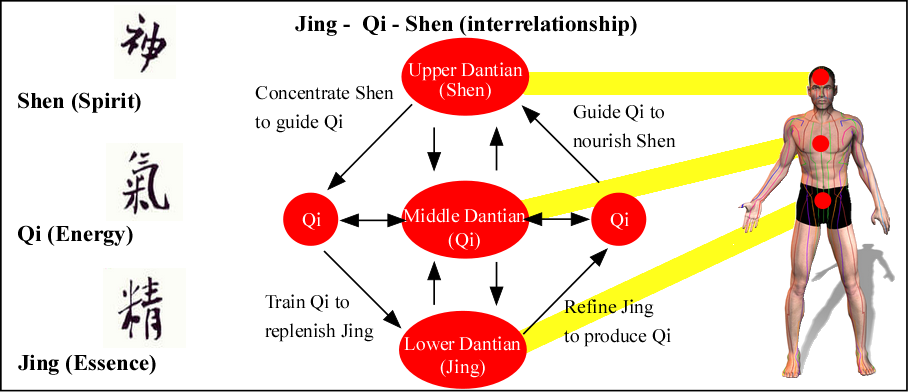 - The base is the dantian—the center of gravity, both physical and spiritual.