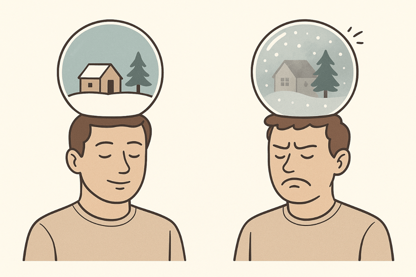 Just as the snowflakes in a globe swirl when shaken, so do thoughts and emotions when the mind is disturbed by stress, fear, or overstimulation. The more one reacts, the longer the “flakes” take to settle. Mindfulness teacher Jillian Pransky (2023) uses this same metaphor to describe how meditation allows the inner “snow” to fall to rest and thus revealing stillness and depth beneath the surface.