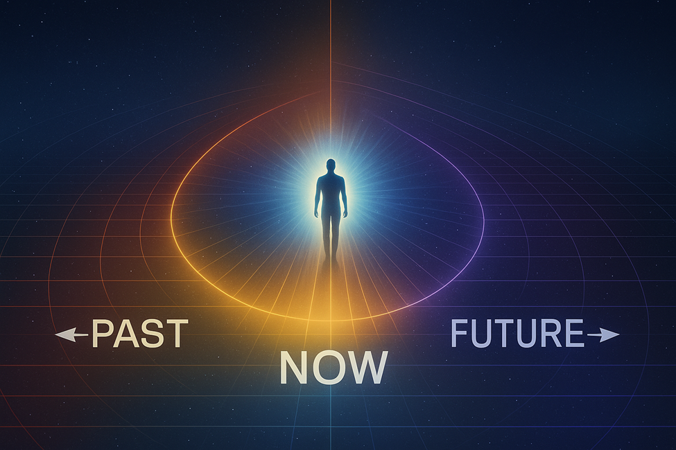 Human cognition evolved to perceive time linearly: a succession of moments divided into past, present, and future. Yet, physics and mysticism alike challenge this perception. Einstein (1955) remarked that the distinction between past, present, and future is a “stubbornly persistent illusion.” From a quantum or relativistic standpoint, all events exist simultaneously in a spacetime continuum. Similarly, Buddhist philosophy teaches that impermanence does not imply temporal fragmentation but the constant flux of a timeless now where each moment birthing the next without true separation (Nagarjuna, as translated in Garfield, 1995).
