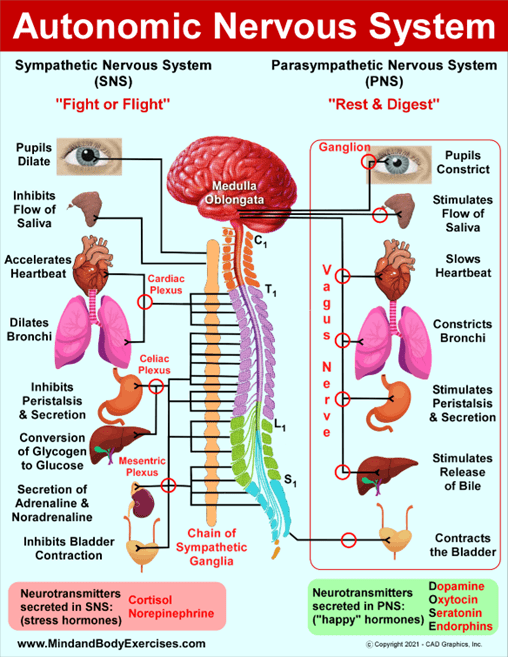 - Regulation of breath and heart rate