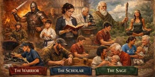 Moreover, this archetype of the Warrior, Scholar and Sage, provides a powerful framework for self-transformation. It teaches that true strength is not brute force, but disciplined action guided by wisdom; that knowledge is hollow without moral grounding; and that virtue, separated from courage and clarity, cannot manifest in the world. The individual who cultivates all three dimensions approaches the classical idea of the junzi,or the “complete human” who embodies harmony between Heaven, Earth, and humanity.