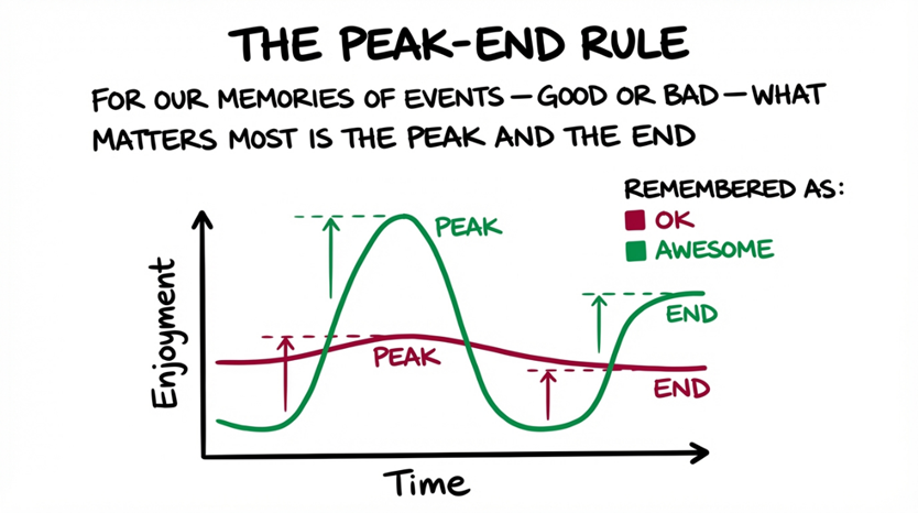 What I have come to understand is that while every relationship will end, not every ending carries the same weight. The way something concludes often determines how it is remembered. Behavioral science supports this idea through what is known as the peak–end rule, a concept associated with Daniel Kahneman. Human beings tend to remember experiences not by averaging every moment, but by recalling emotional peaks and how the experience ended.