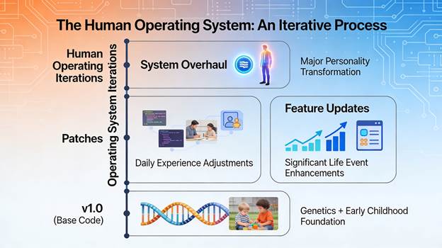 The comparison to software versions, upgrades, and improved models is quite relevant to modern culture. If our foundational personality, determined by genetics and early childhood, is the “base code” or the operating system (v1.0), then every subsequent interaction acts as a patch, a feature update, or sometimes, a complete system overhaul.