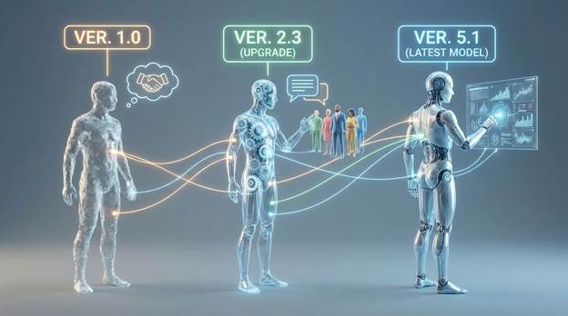 Furthermore, I would like to expand upon this concept, exploring the mechanics of how these “upgrades” happen and extending the metaphor of versions and models.