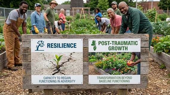 Resilience and post traumatic growth are often conflated, but they represent distinct processes. Resilience refers to the capacity to maintain or regain functioning in the face of adversity. Post traumatic growth refers to transformation beyond baseline functioning (Southwick et al., 2014).