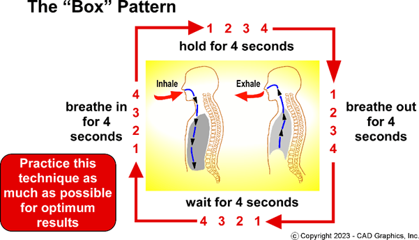 Box Breathing as a Mental and Physiological Tool: The “box breathing” technique engages both the breath and the mind to create a focused, rhythmic pattern that promotes relaxation and mental clarity. It is effective for reducing anxiety in high-stress professions (e.g., Navy SEALs) and can be adapted for everyday use. By focusing attention on the breath cycle, it breaks negative thought loops, anchors the mind, and physically signals the nervous system to shift towards calmness.