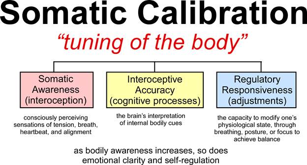 Ultimately, somatic calibration is not limited to therapy or training, but rather it is a lifelong practice of attuning to the ever-changing signals of one’s internal and external environment. In a world that often prioritizes cognition over embodiment, somatic calibration restores equilibrium, offering a path toward resilience, integration, and inner harmony.