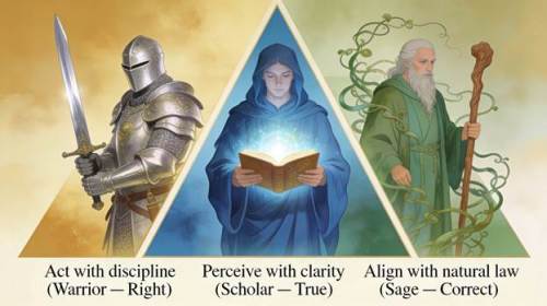 Modern culture equates productivity with virtue. We are conditioned to believe that constant motion is synonymous with progress and that rest is a form of weakness. Yet across classical Eastern philosophy, martial traditions, and contemplative lineages, wisdom has never been measured by how much one does, but by knowing when to act and when not to act. This discernment lies at the heart of the Warrior–Scholar–Sage archetype and is expressed through the timeless triad of True, Right, and Correct.